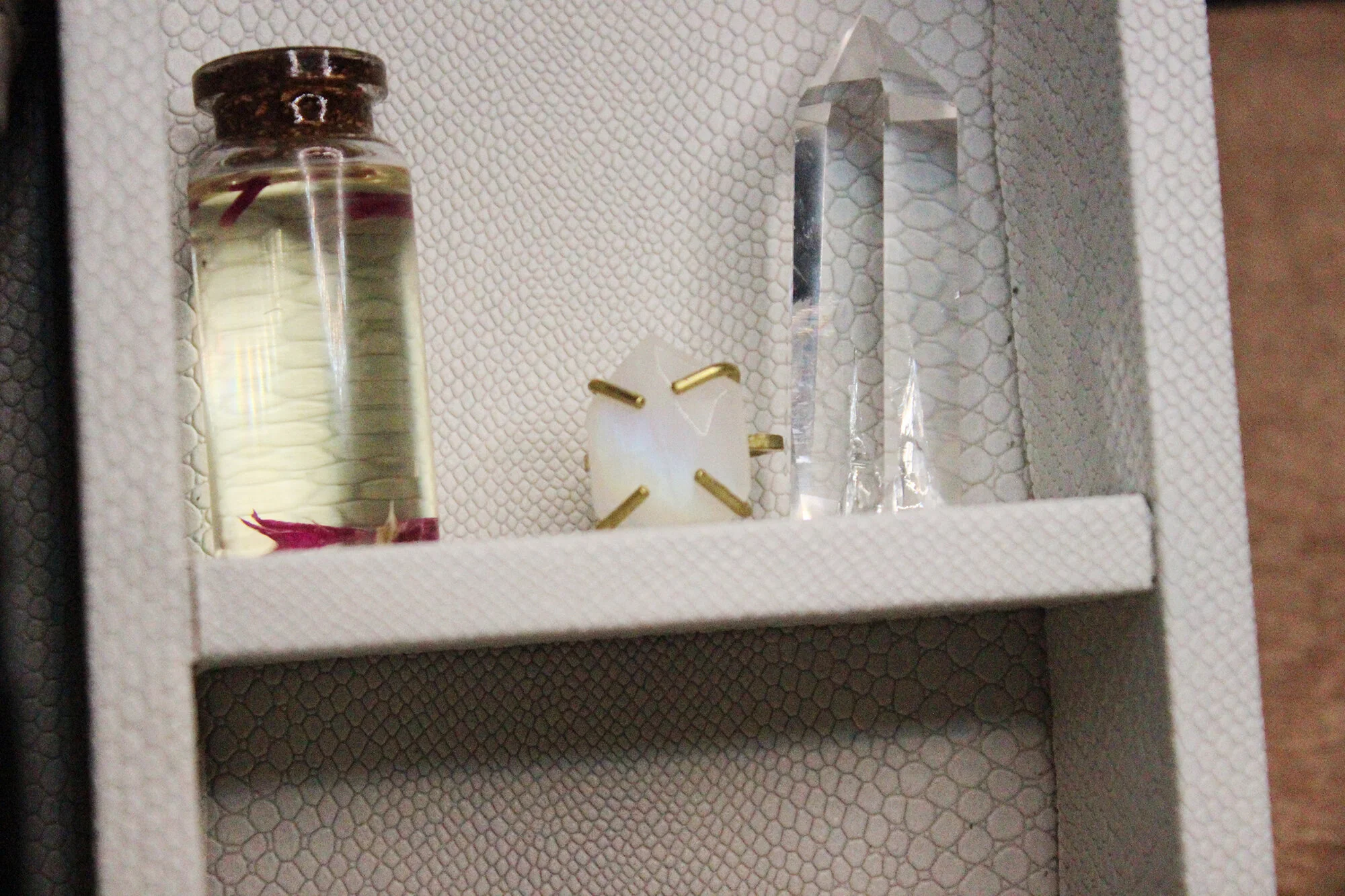 Rare Moss Agate crystal with 3 Green Tourmaline inclusions. Beautifully translucent ring.